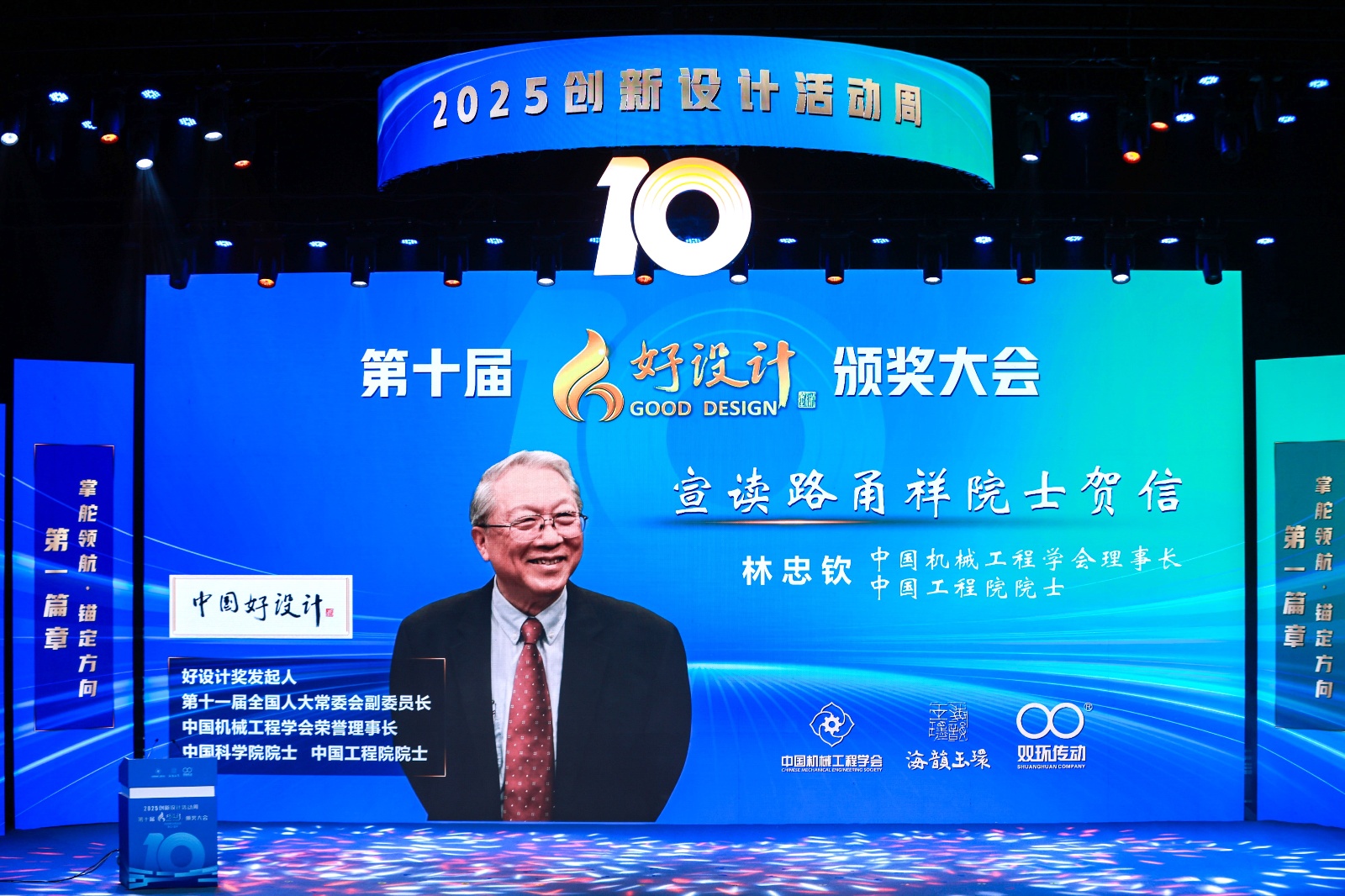 在致辭中,林忠欽院士回顧了好設計獎十年發(fā)展歷程,指出“好設計”獎見(jiàn)證并推動(dòng)了中國設計從模仿跟蹤到自主設計、原創(chuàng )設計的偉大跨越。2015年,在路甬祥院士、潘云鶴院士共同倡導下,中國機械工程學(xué)會(huì )正式設立“好設計”獎。如今,獎項已發(fā)展為制造業(yè)創(chuàng )新設計綜合性科技獎項,評選出大批代表中國設計崛起的典型項目,為深入推進(jìn)創(chuàng )新驅動(dòng)發(fā)展戰略發(fā)揮了重要作用。林忠欽院士表示,站在新十年的起點(diǎn),浙江雙環(huán)傳動(dòng)機械股份有限公司及吳長(cháng)鴻董事長(cháng)給予我們大力支持,更讓獎項在“中國制造”向“中國創(chuàng )造”跨越中注入新動(dòng)能。期待好設計獎在未來(lái)十年繼續匯聚全國創(chuàng )新設計的智慧與力量,發(fā)掘更多彰顯中國智慧、代表中國名片的好設計,為全面建設社會(huì )主義現代化國家、實(shí)現中華民族的偉大復興作出新的更大貢獻。